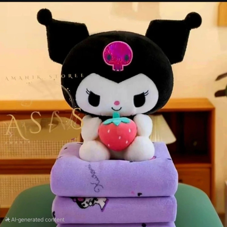 یه عروسک جذاب با پارچه نانو خارجی به عنوان بالشت به همراه یک پتو بالشتی طرح کرومی .گزینه عالی برای تفریح و سفر